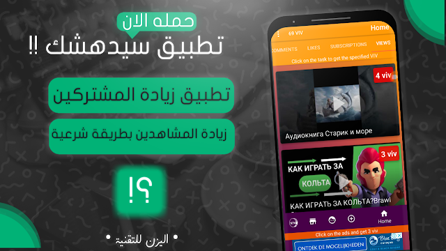 السلام عليكم ورحمة الله وبركاته متابعينا على قناة ومدونة اليزن للتقنية نقدم لكم اليوم تطبيق رائع يمكنكم ان تزيد مشتركين قناتك وفيديوهاتك ولايكاتك على قناتك بطريقة شرعية هذا التطبيق ستشكرني عليه شاهد افيديو فرجة ممتعة للجميع :: تحميل التطبيق